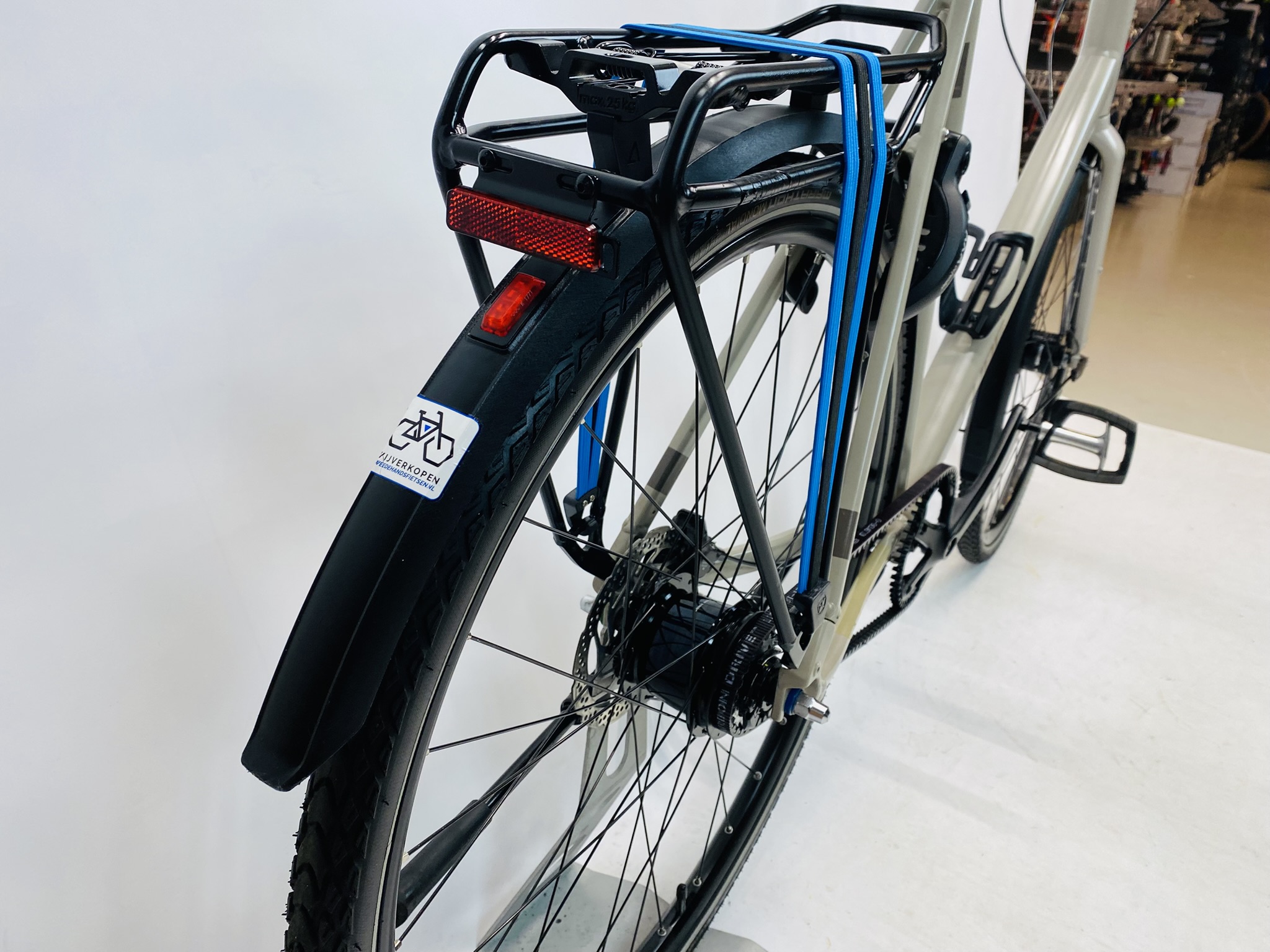 Deze fiets is in uitstekende staat en nauwelijks gebruikt. Dit kan een occasion, een demo-model of een fiets zijn die alleen uit de verpakking is gehaald. Kleine cosmetische imperfecties kunnen voorkomen, maar technisch is de fiets vrijwel nieuw.