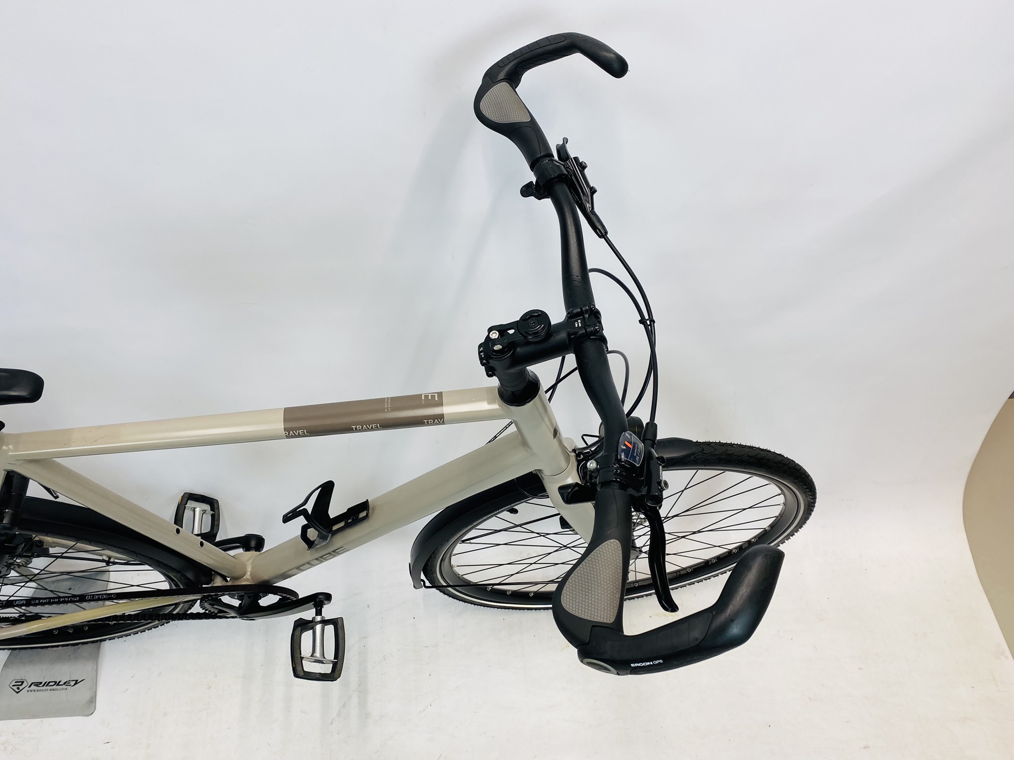 Demo CUBE Travel herenfiets XL-62cm ALFINE&beltdrive met 6 maanden garantie, framemaat geschikt voor 175 cm – 192 cm. Afgemonteerd met Shimano Alfine Belt / Riemaandrijving Gates CDX (8 versnellingen). Automatisch met naafdynamo voor + achter van Shimano (naaf dynamo).