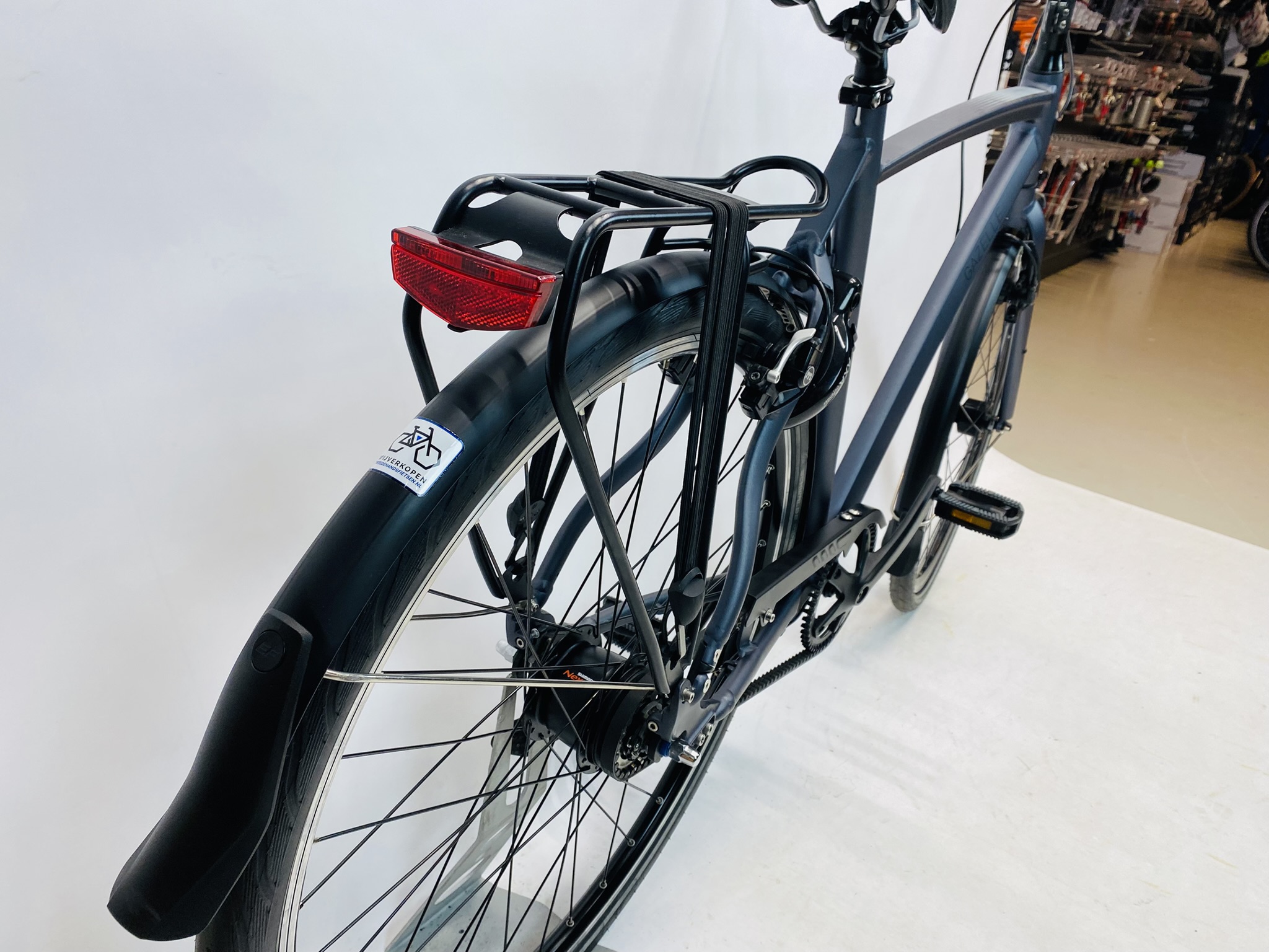 Deze fiets is in uitstekende staat en nauwelijks gebruikt. Dit kan een occasion, een demo-model of een fiets zijn die alleen uit de verpakking is gehaald. Kleine cosmetische imperfecties kunnen voorkomen, maar technisch is de fiets vrijwel nieuw.