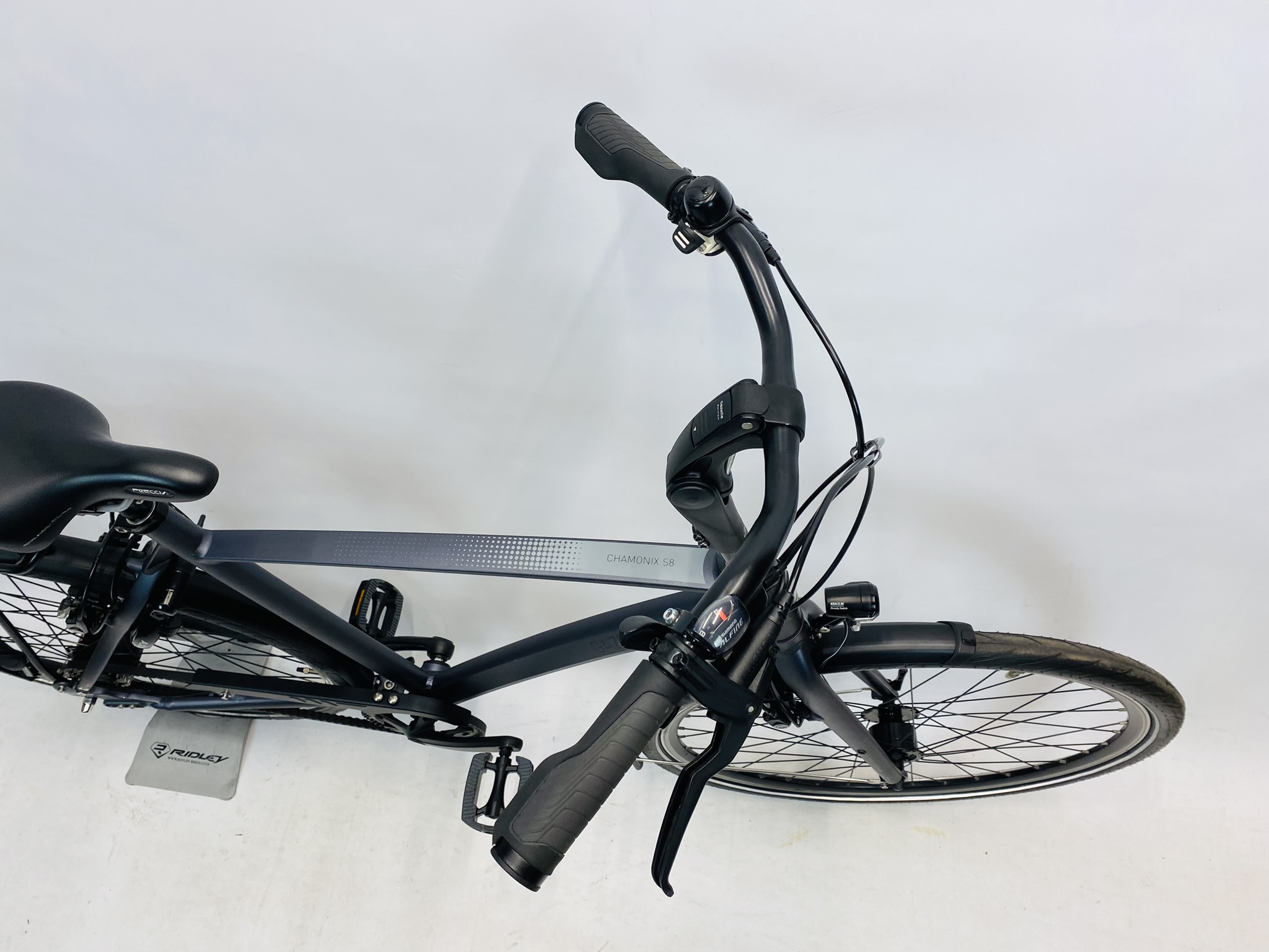 Demo GAZELLE Chamonix S8 herenfiets L-57cm BeltDrive met 6 maanden garantie, framemaat geschikt voor 170 cm – 185 cm. Afgemonteerd met Shimano Nexus 8 Belt / Riemaandrijving (8 versnellingen). Automatisch met naafdynamo & batterij van Shimano (naaf dynamo).