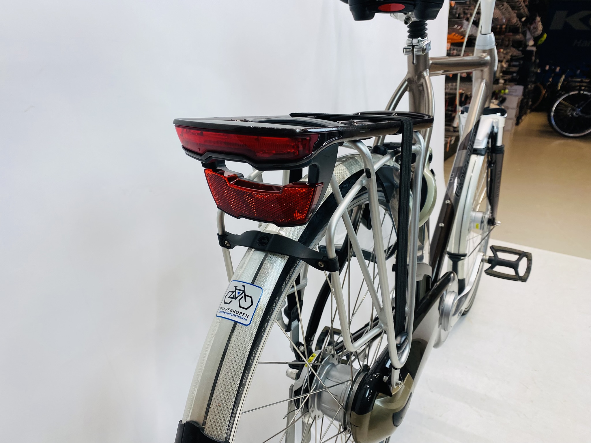 Deze fiets is in uitstekende staat en nauwelijks gebruikt. Dit kan een occasion, een demo-model of een fiets zijn die alleen uit de verpakking is gehaald. Kleine cosmetische imperfecties kunnen voorkomen, maar technisch is de fiets vrijwel nieuw.