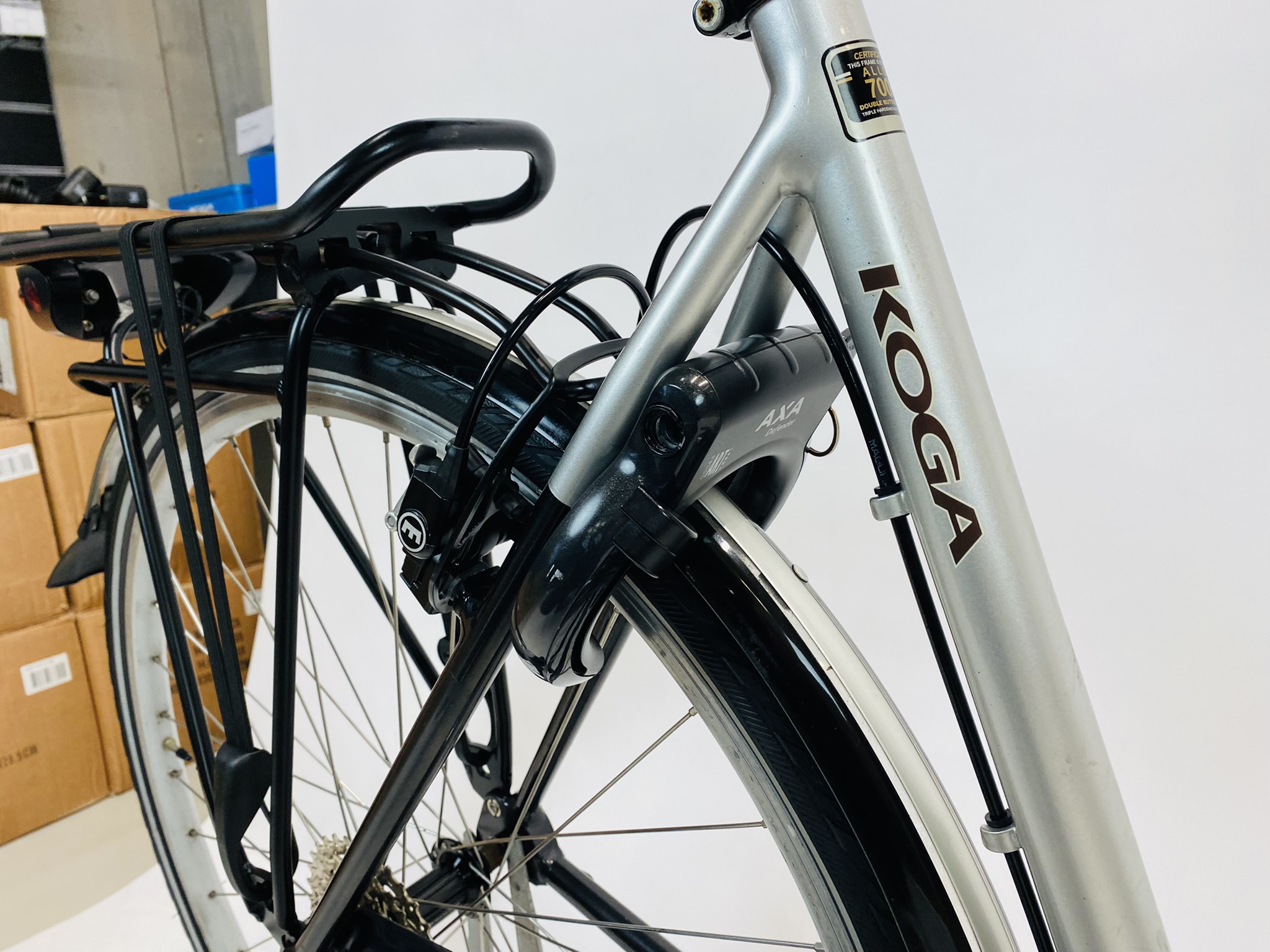 Remmen doe je krachtig en gecontroleerd met het hydraulische remsysteem en Magura HS 11 remmen. Hydraulisch betekent dat remkracht via vloeistof wordt doorgegeven. Dat remt constant en voelt zeker aan. Je verlichting is automatisch met naafdynamo voor en achter. Dus geen losse batterijen, wel altijd licht. De naafdynamo is van Shimano Deore. Verder krijg je een stevige RACKTIME bagagedrager, een standaard en een slot. Het slot is een Axa Defender met ART 2 keurmerk. Daarnaast is er mogelijkheid voor een kinderzitje voor en kun je een bagagedrager voor en achter gebruiken. Deze KOGA Confidance damesfiets M is refurbished en komt met 6 maanden garantie. Ook afhalen is mogelijk. Kortom: zoek je een comfortabele, betrouwbare Koga toerfiets die klaar is voor veel kilometers? Dan zit je met deze fiets helemaal goed.