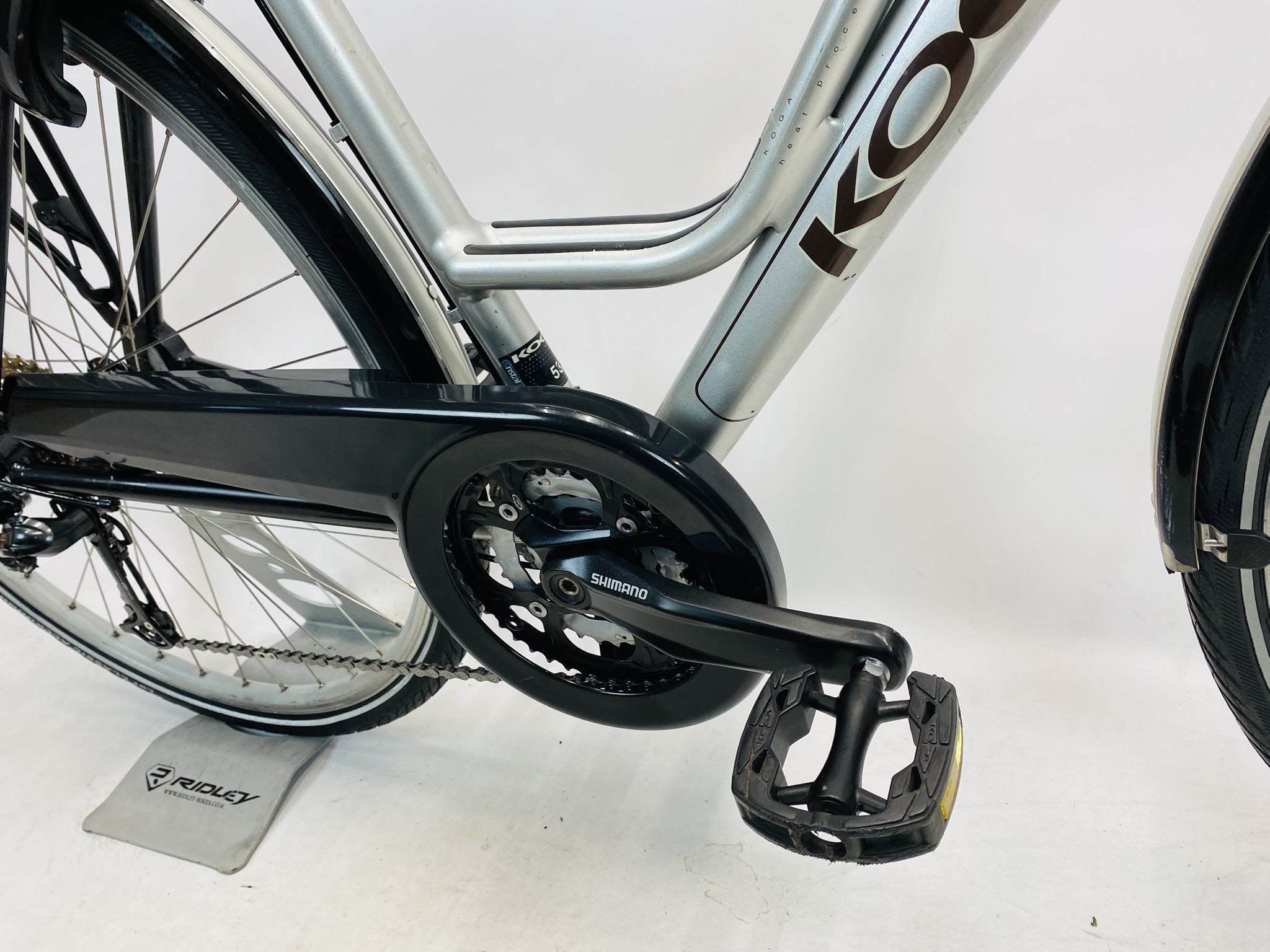 Refurbished KOGA Confidance damesfiets M-53cm – Naafdynamo met 6 maanden garantie, framemaat geschikt voor 155 cm – 172 cm. Afgemonteerd met Shimano Deore ketting / derailler (27 versnellingen). Automatisch met naafdynamo voor + achter van Shimano Deore (naaf dynamo).