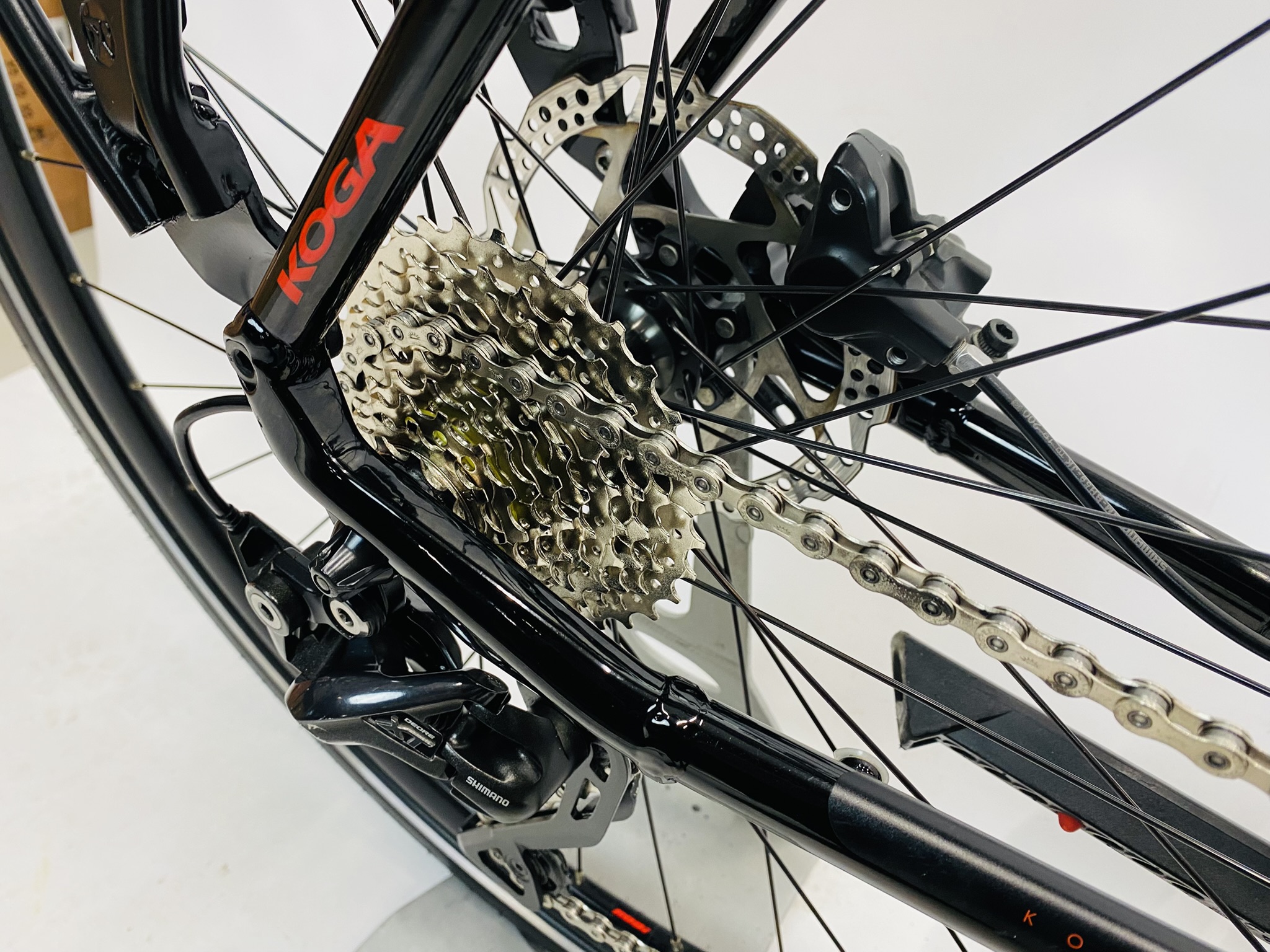 Refurbished KOGA F3 5 0 herenfiets L-57cm Naafdynamo & Schijfrem met 6 maanden garantie, framemaat geschikt voor 170 cm – 185 cm. Afgemonteerd met Shimano Deore XT ketting / derailler (30 versnellingen). Automatisch met naafdynamo & batterij van Shimano (naaf dynamo).