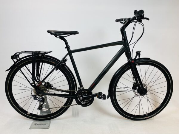Refurbished KOGA F3 5 herenfiets M-54cm Naafdynamo & Schijf rem met 6 maanden garantie, framemaat geschikt voor 155 cm – 172 cm. Afgemonteerd met Shimano SLX ketting / derailler (30 versnellingen). Automatisch met naafdynamo voor + achter van Shimano (naaf dynamo).
