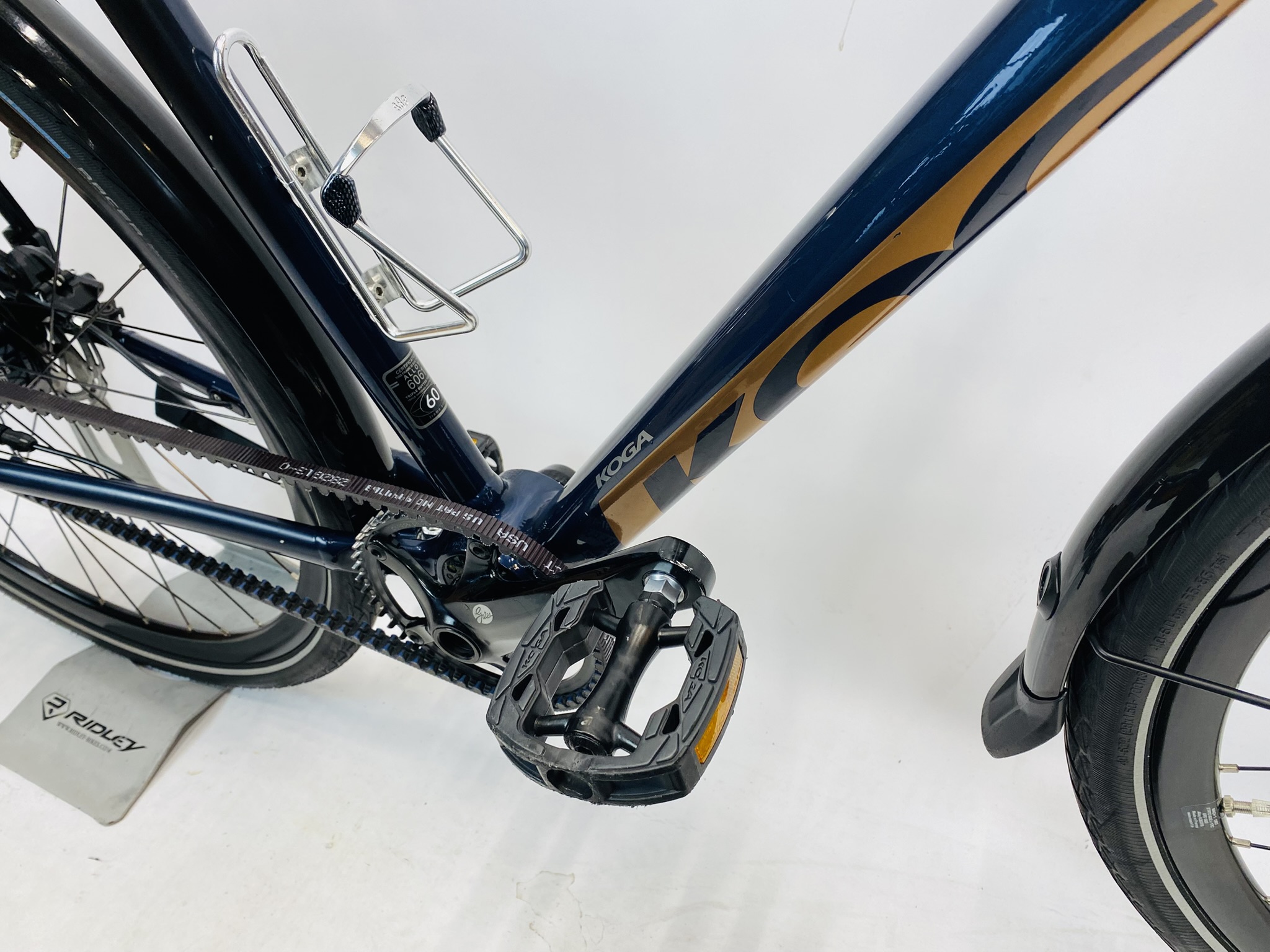 Refurbished KOGA F3 6 0 damesfiets XL-60cm Blauw Naaydynamo+Alfine 11 met 6 maanden garantie, framemaat geschikt voor 175 cm – 192 cm. Afgemonteerd met Shimano Alfine 11 Belt / Riemaandrijving (11 versnellingen). Automatisch met naafdynamo & batterij van Shimano (naaf dynamo).