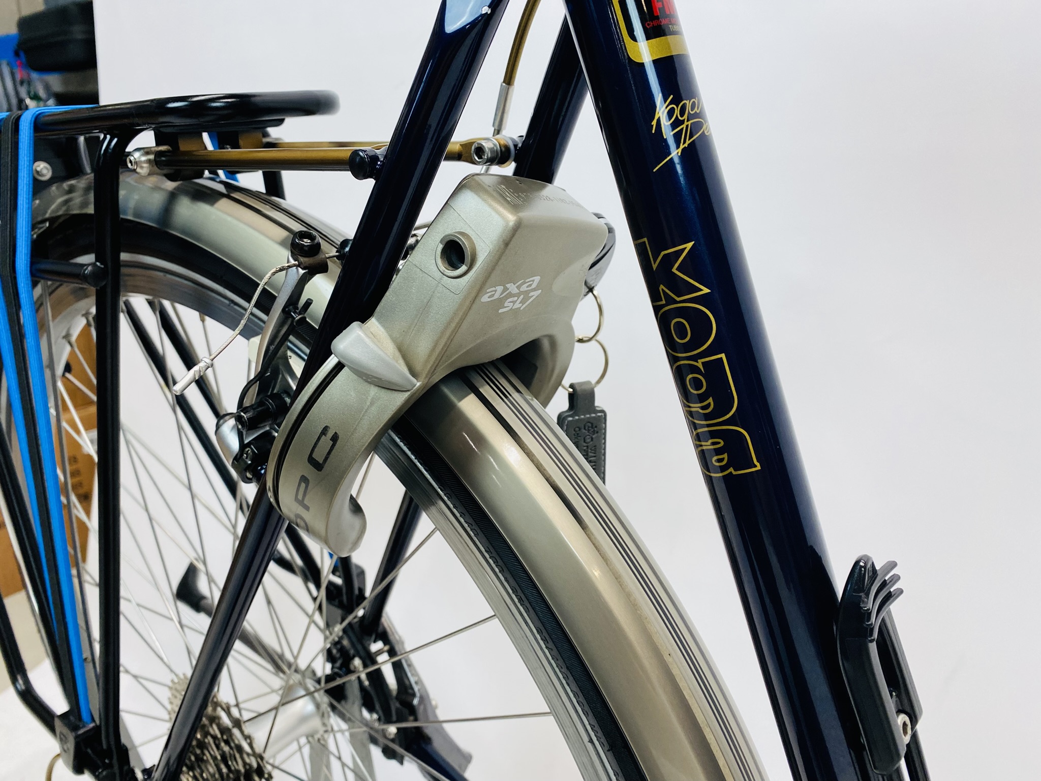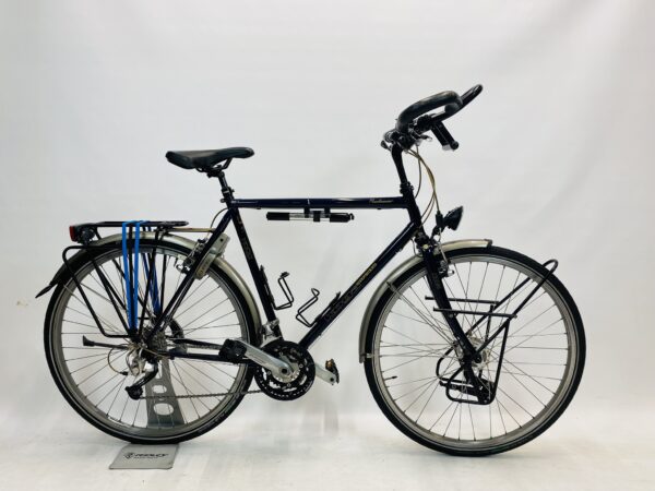 Refurbished KOGA Randonneur Vakantie herenfiets L-57cm naafdynamo met 6 maanden garantie, framemaat geschikt voor 170 cm – 185 cm. Afgemonteerd met Shimano Deore XT – Deore LX ketting / derailler (27 versnellingen). Automatisch met naafdynamo voor + achter van Shimano (naaf dynamo).