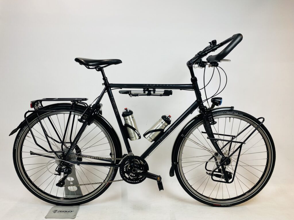 Refurbished KOGA Randonneur Vakantie herenfiets XL-60cm – Naafdynamo met 6 maanden garantie, framemaat geschikt voor 175 cm – 192 cm. Afgemonteerd met Shimano Deore XT ketting / derailler (30 versnellingen). Automatisch verlichting van Shimano Deore XT (naafdynamo).