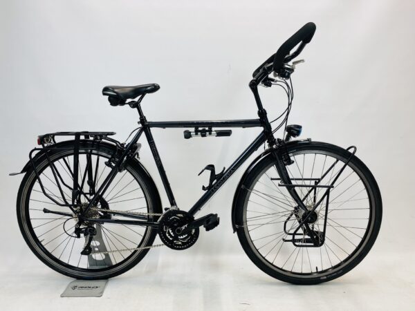 Refurbished KOGA S-Randonneur herenfiets M-54cm Naafdynamo met 6 maanden garantie, framemaat geschikt voor 155 cm – 172 cm. Afgemonteerd met Shimano Deore LX ketting / derailler (30 versnellingen). Automatisch met naafdynamo voor + achter van Shimano (naaf dynamo).