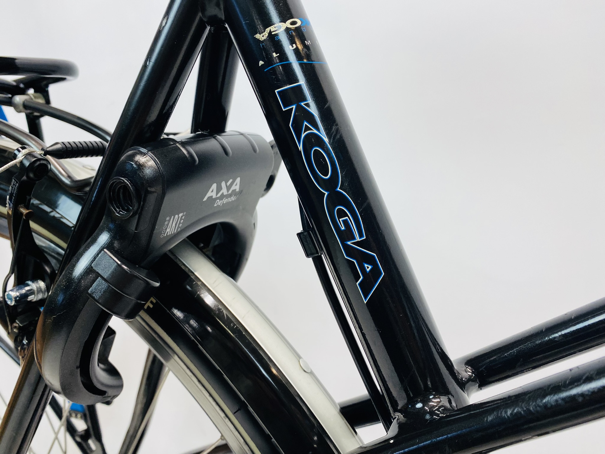 Deze KOGA heeft een aluminium frame. Dat is stevig en toch lekker licht. Je rijdt op 28 inch wielen, wat prettig rolt op asfalt en fietspaden. Met 30 versnellingen en een ketting met derailleur schakel je ruim. Een derailleur is het systeem dat de ketting naar een ander tandwiel verplaatst. Zo kies je makkelijker een lichte of zware trapstand. Remmen doe je met handremmen van Shimano Deore LX, en de afmontage is ook Shimano Deore LX. Verder zit er een comfort zadel op, plus een verstelbaar stuur en verstelbare stuurpen. Zo stel je de zithouding simpel af op jouw voorkeur.