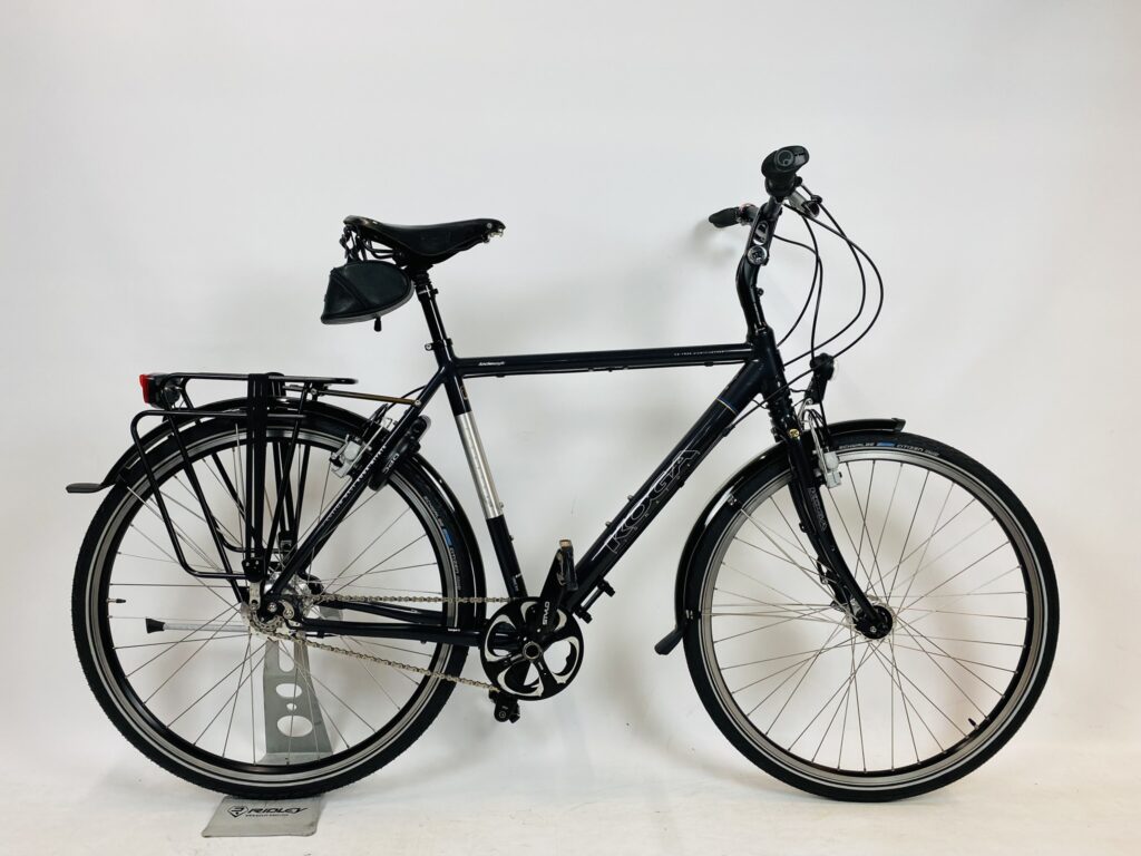 Refurbished KOGA S-Traveller Vakantie herenfiets L-57cm Rohloff+Naafdynamo met 6 maanden garantie, framemaat geschikt voor 170 cm – 185 cm. Afgemonteerd met Rohloff kettingaandrijving (14 versnellingen). Automatisch verlichting voor + achter van Shimano (naaf dynamo).