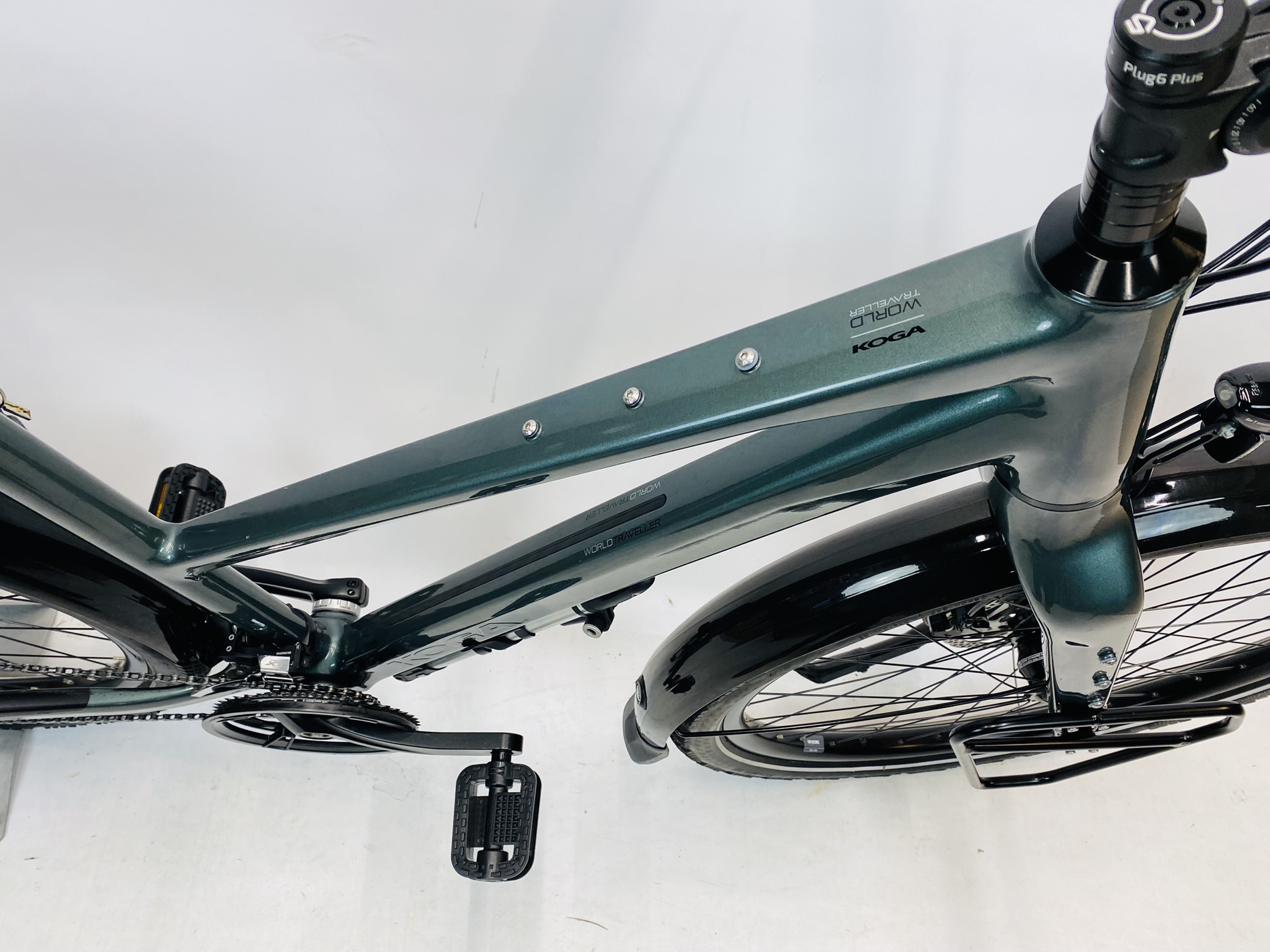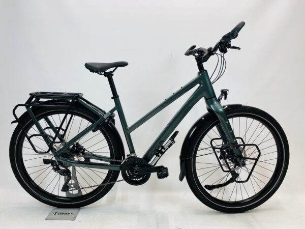 Refurbished KOGA S-WorldTraveller damesfiets L-56cm Naafdynamo 2024 met 6 maanden garantie, framemaat geschikt voor 170 cm – 185 cm. Afgemonteerd met Shimano Deore XT ketting / derailler (30 versnellingen). Automatisch met naafdynamo voor + achter van Shimano (naaf dynamo).