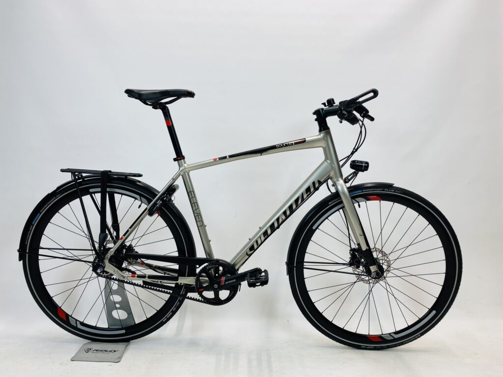 Refurbished SPECIALIZED Source Eleven herenfiets L-57cm ALFINE 11 + naafdynamo met 6 maanden garantie, framemaat geschikt voor 170 cm – 185 cm. Afgemonteerd met Shimano Alfine 11 Belt / Riemaandrijving (11 versnellingen). Automatisch met naafdynamo voor + achter van Shimano (naaf dynamo).