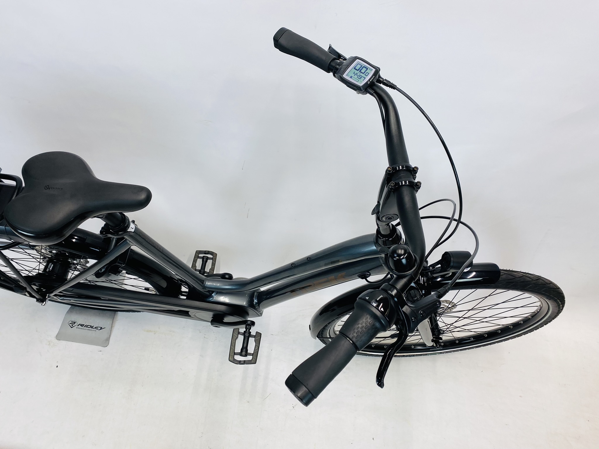 Refurbished TREK District elektrische damesfiets L-57cm – Accu 11AH-400WH – km 4497 met 6 maanden garantie, framemaat geschikt voor 170 cm – 185 cm. Afgemonteerd met Shimano Nexus 7 ketting / derailler (7 versnellingen). Automatisch op de accu verlichting.