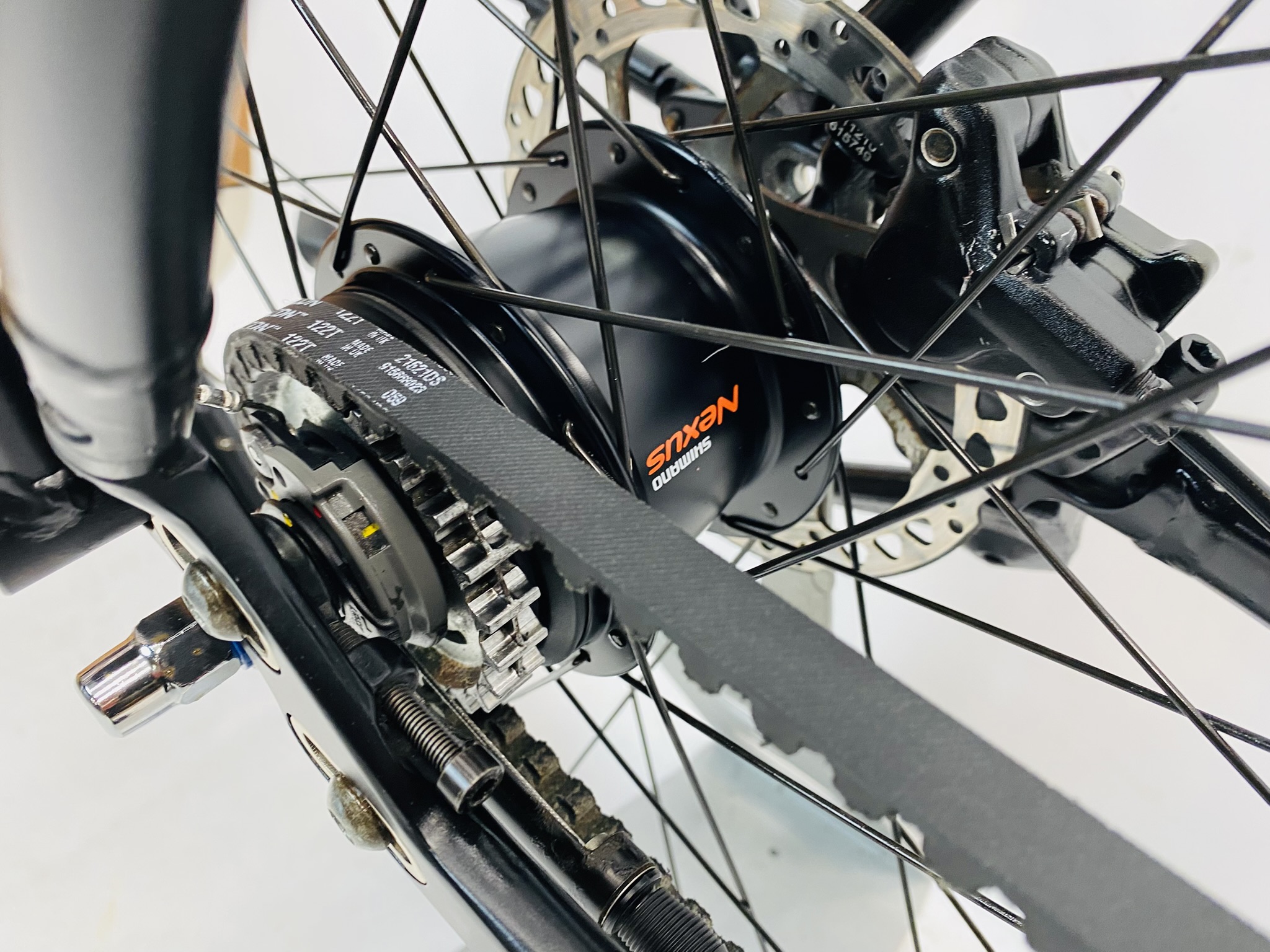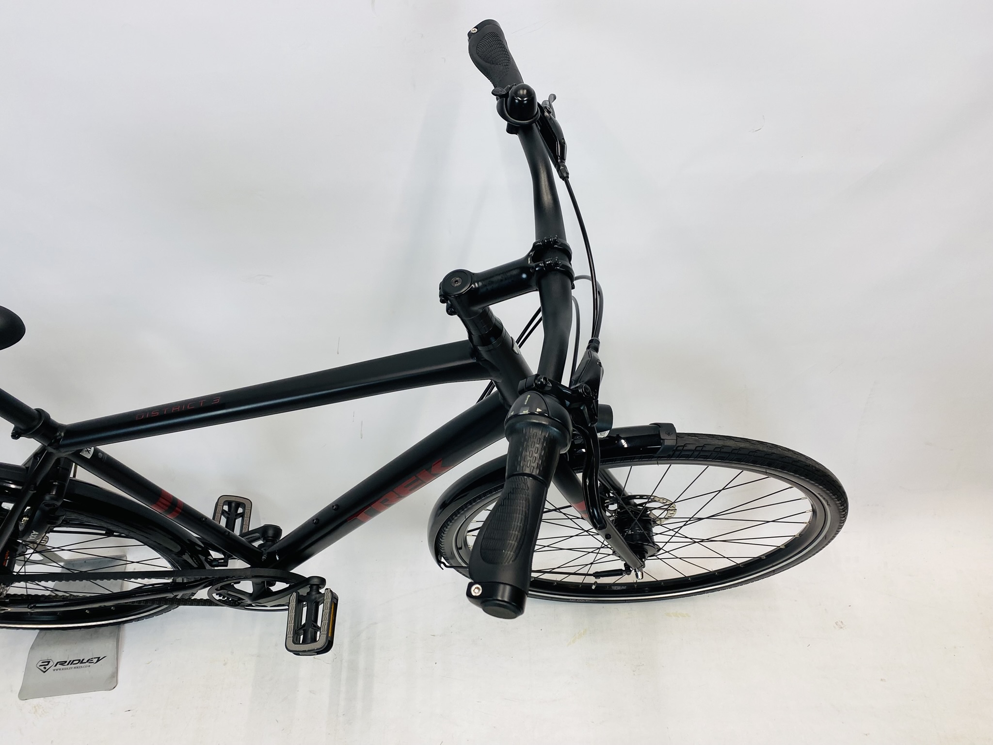 Refurbished TREK District herenfiets XL-60cm Naaydynamo&beltdrive met 6 maanden garantie, framemaat geschikt voor 175 cm – 192 cm. Afgemonteerd met Shimano Nexus 8 riemaandrijving (8 versnellingen). Automatisch met naafdynamo voor + achter van Shimano (naaf dynamo).